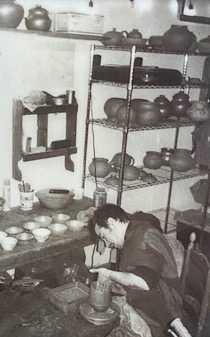 I harvest and clean my own micaceous clay to make my cooking vessels. All of my work is handbuilt, using the coil and scrape technique. Once a piece has dried, I water-scrape it inside and out to even the surface. Next, my pieces are sanded with sandstone, and then sandpaper. They are polished with a micaceous clay slip and burnished with an agate, which gives them their distinctive shine. Each vessel is fired in an electric kiln and then finished with a pit firing. The process marks each pot with unique fire-clouds, so no two vessels will ever look alike.